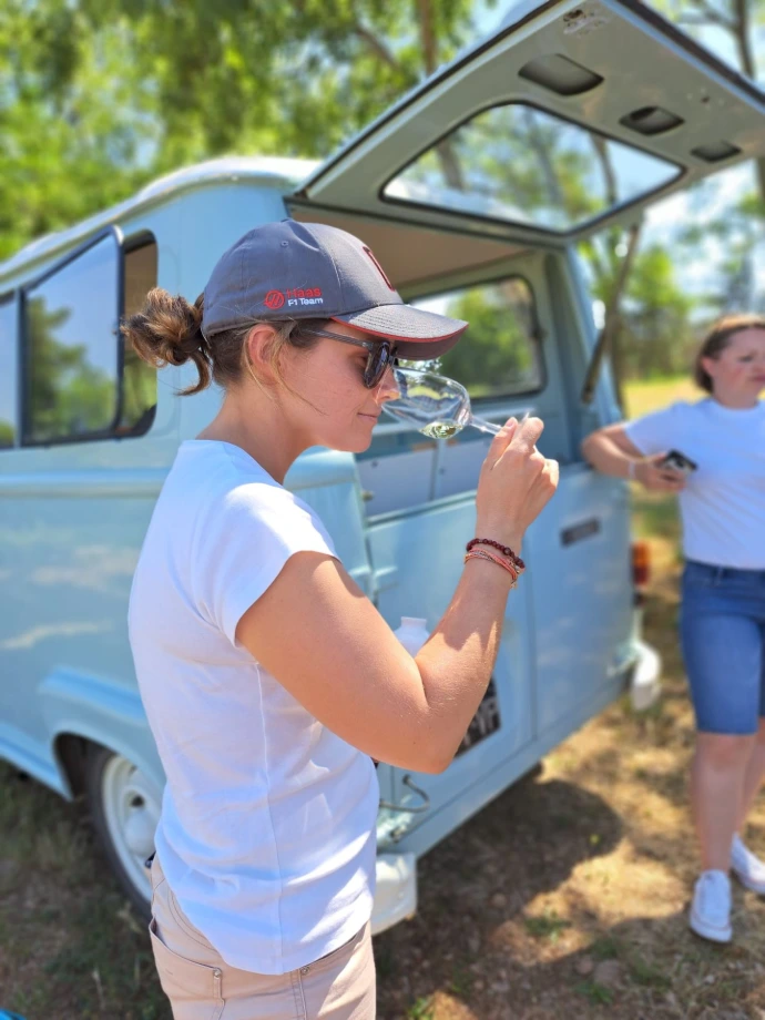 With a deep knowledge of the appellations and local winemakers, she offersimmersive experiences: commented tastings, visits to estates, and even walks through the vineyards in historic vehicles for a touch of authenticity. Her approach, both friendly and expert, appeals to both novices and knowledgeable enthusiasts.